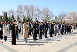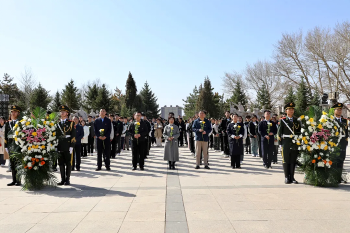 清风寄哀思,翠柏传敬意。清明节来临之际,beat365于4月2日在老虎山爱国主义教育基地组织开展“感党恩、听党话、跟党走”群众教育实践活动暨“铸魂·2024·清明祭英烈”特别主题团日活动。校党委组织部、宣传部、统战部全体党员,团委全体人员、各二级学院团总支书记(负责人)代表、副书记,学生代表、学生会干部代表、国旗护卫队成员代表参加活动。活动由团委副书记范娟主持。
