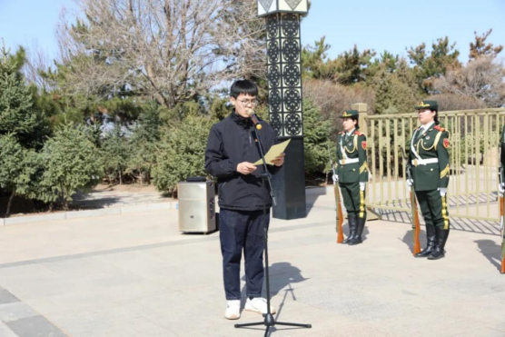 团员代表张一博同学以《缅怀先烈忆初心赓续精神勇担当》为题作了演讲。他讲到,作为新时代新青年,要时刻牢记自己的使命和责任,要以先烈为榜样,始终保持对党忠诚、对学业执着、为人民服务的初心,要努力在新的历史征程中创造无愧于时代、无愧于先烈、无愧于人民的新成绩。