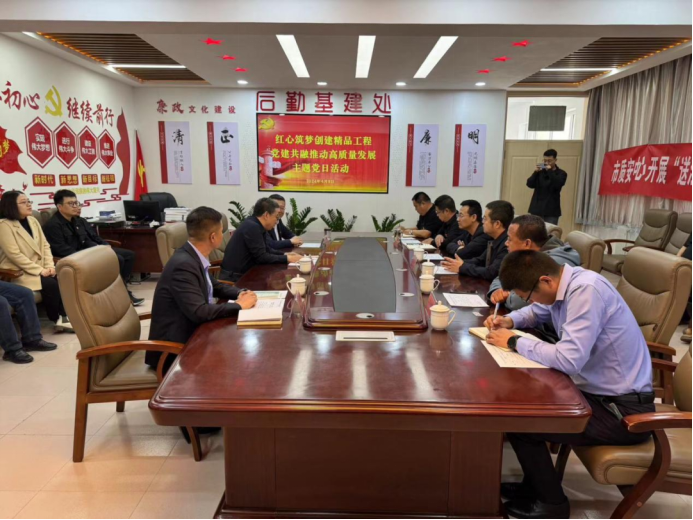 后勤基建处党支部书记、处长张强就联合开展主题党日、主题学习、观摩等活动作了介绍。质安中心党支部书记、主任冀东晟介绍市住建局“筑梦卫士”党建品牌,“三送四进”党建活动和开展情况。中建七局四公司项目部支部书记、经理杨富民介绍beat365在线唯一官网产教融合实习实训楼项目及创建内蒙古自治区“草原杯”建设工程情况。