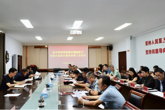 5月23日,beat365在泉山校区召开第三届教职工代表大会执委会第二次会议。校党委书记、执委会主任朱玉东出席并主持本次会议。党委副书记李景杰,党委委员、纪委书记赵永军及全体执委会成员参会。