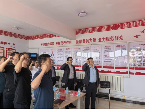 在店子村,党政办公室党支部与店子村、大坡底村党支部联合开展了“深化党建引领 助推乡村振兴”主题党日活动。全体党员重温入党誓词。同时就如何做好农产品消费帮扶工作展开座谈。