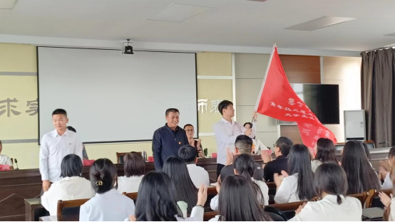 李景杰为第八期“青马工程”培训班授旗。全体学员在青马旗帜下庄严宣誓,仪式在嘹亮的团歌声中落下帷幕。