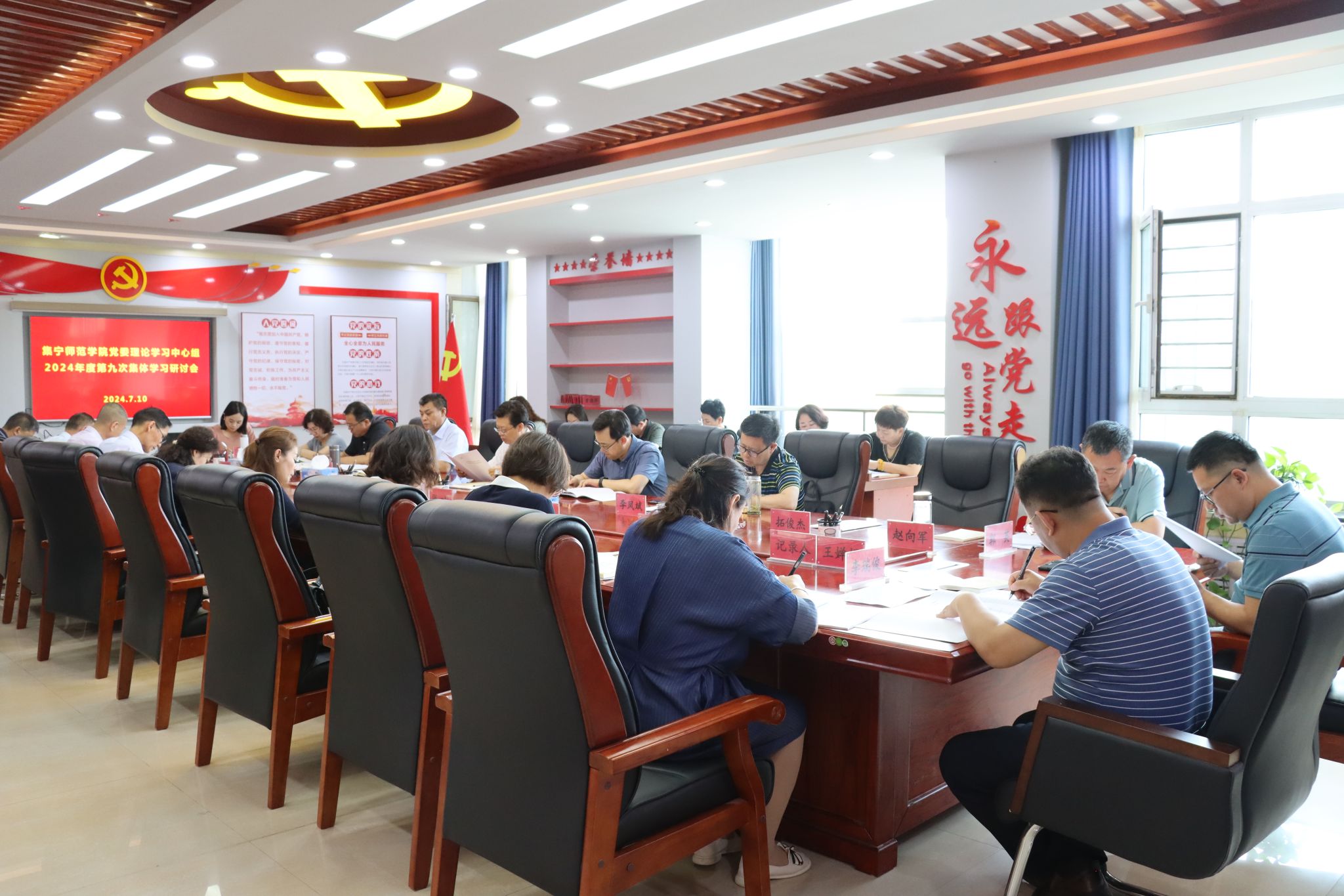7月10日,beat365召开党委理论学习中心组2024年第9次集体学习(扩大)会。校党委书记朱玉东主持会议并讲话,校党委理论学习中心组全体成员参会。副校长李凤斌,各二级理论学习中心组组长列席会议。