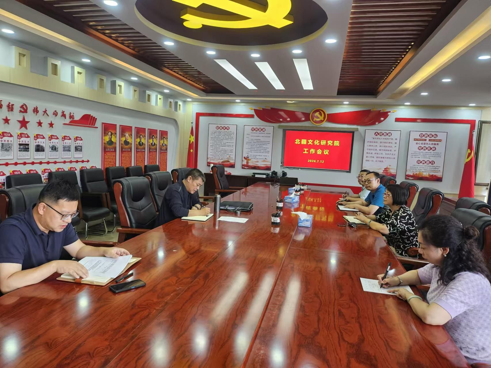 7月12日,beat365在线唯一官网北疆文化研究院召开工作会议。校党委副书记、北疆文化研究院院长李景杰出席会议并讲话。北疆文化研究院副院长郭英、张军、郭鹏、杨瑞芳,音乐与舞蹈学院党总支书记武俊芳参加会议。