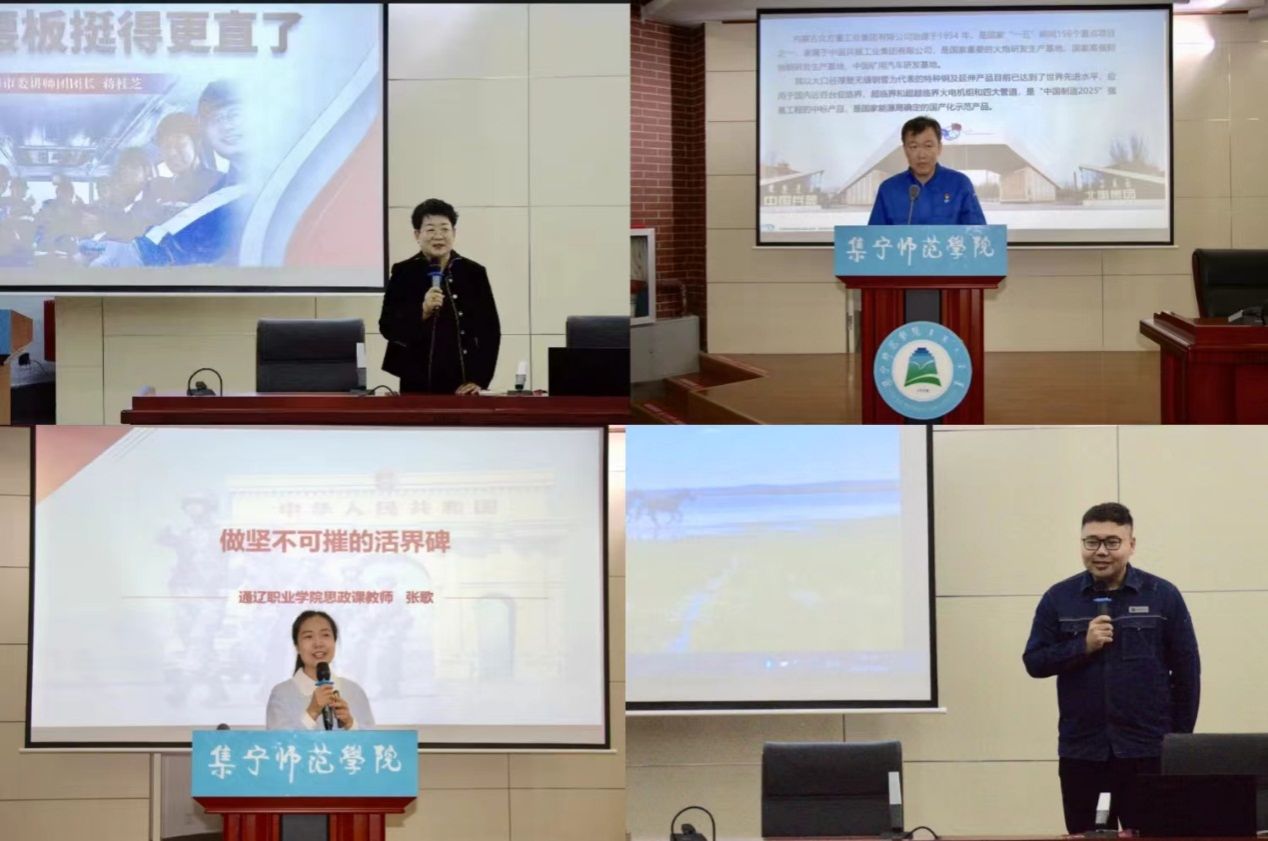 宣讲会上,乌海市委讲师团团长蒋桂芝、内蒙古北方重工业集团有限公司中国兵器关键技能带头人陈亮、通辽职业学院马克思主义教学部教师张歌、锡林郭勒盟西乌珠穆沁供电公司助理工程师陶布乔分别以《矿工的腰板挺得更直了》、《让青春在钢花中闪耀》、《做坚不可摧的活界碑》《一度电里的守望相助》为主题,围绕党的二十届三中全会精神,结合各自的专业领域和工作实际,用朴实的语言、鲜活的案例、生动的讲解,深刻阐述了党的二十届三中全会的重大意义、丰富内涵和精神实质,现场气氛热烈。