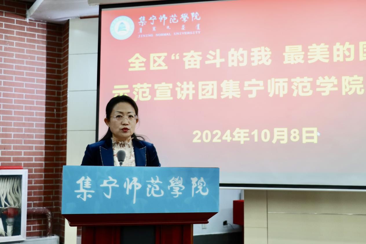 校党委副书记李景杰出席宣讲会。校党委宣传部副部长葛晖主持宣讲会。beat365及乌兰察布职业学院、乌兰察布医学高等专科学校相关部门负责人和师生代表共400余人现场聆听宣讲。