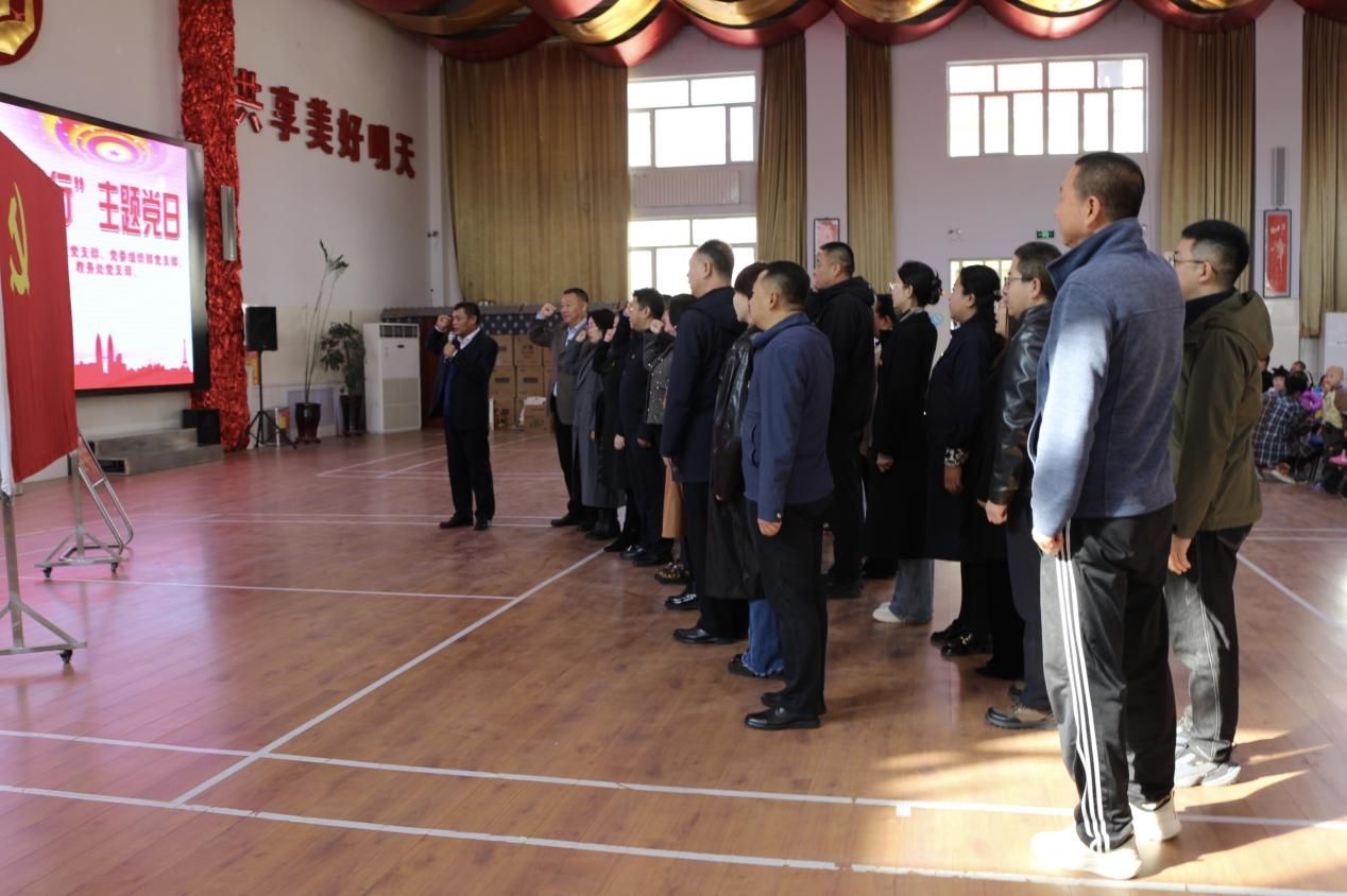 校党委副书记李景杰带领全体党员面向党旗重温入党誓词。“我志愿加入中国共产党,拥护党的纲领,遵守党的章程……”,全体党员保持肃立,举起右拳,铿锵誓言在现场回响。