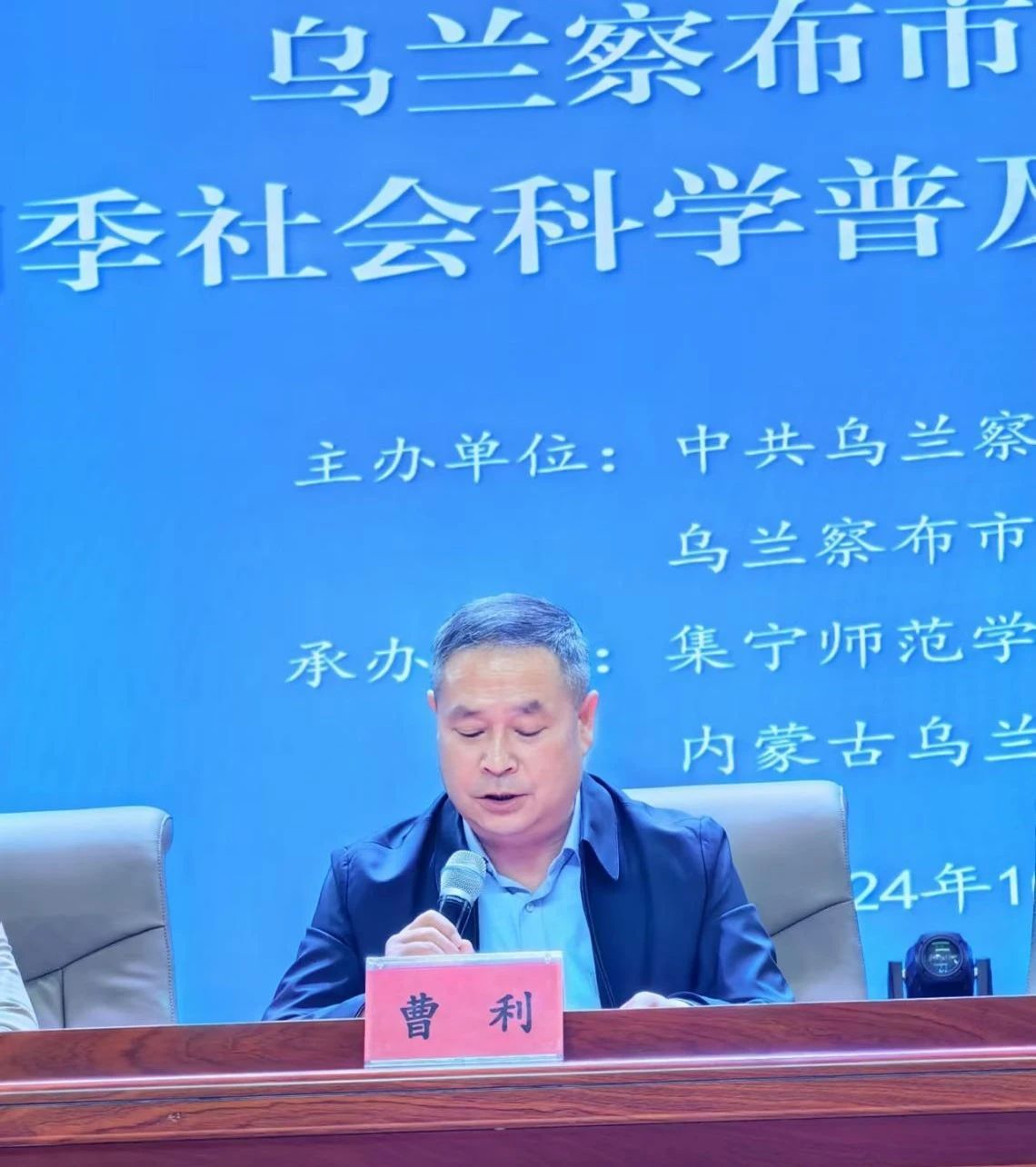 市社科联主席曹利在讲话中强调,广大社科工作者要深入学习习近平总书记关于文化和旅游工作的重要论述,准确把握党中央关于加快建设旅游强国、推动旅游业高质量发展的部署要求,深刻理解文旅融合的重要意义,主动在推进文旅融合发展中积极作为;要充分发挥社科领域专家学者智慧力量和带动辐射作用,坚持围绕工作中心、服务大局,聚焦文旅融合发展,在理论研究、学术研讨、课题立项等方面形成更多具有应用价值和指导意义的成果,为推动文旅融合发展提供智力支持;要把文旅融合与学习贯彻落实党的二十届三中全会精神有机结合起来,通过组织开展形式多样、内容丰富的“七进”活动,广泛传播文旅融合的理念和实践路径,宣传普及文旅融合发展的本质内涵和战略部署,推动乌兰察布文旅融合高质量发展。