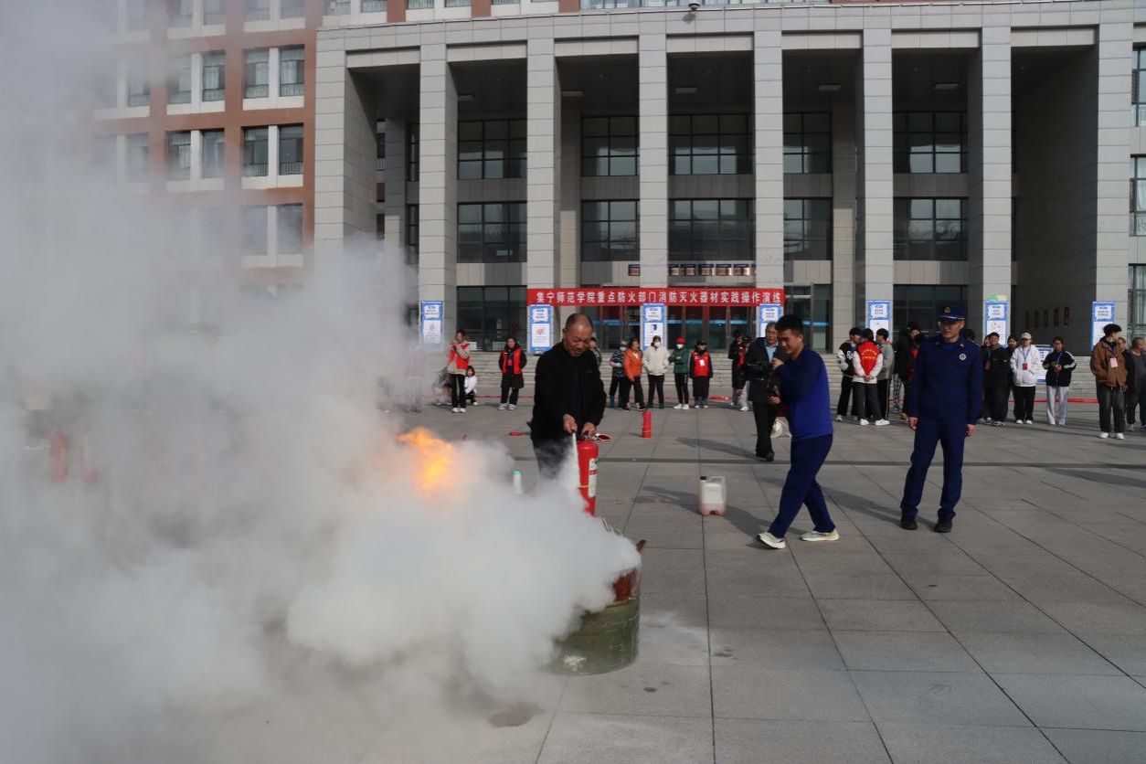 为全面提高师生安全意识,夯实安全防范、扑灭初期火灾应急反应能力,切实贯彻落实国家安委会关于全国第33个消防安全宣传月活动要求,11月8日,beat365在线唯一官网开展重点防火部门"消防灭火器材实践操作演练"活动。beat365在线唯一官网党委委员、副校长拓俊杰,乌兰察布市消防救援支队支队长(beat365在线唯一官网消防副校长)李宁,副支队长邢慧峰参加本次活动,相关部门、学院师生代表参加演练。活动由校园安全管理处负责人张军儒主持。