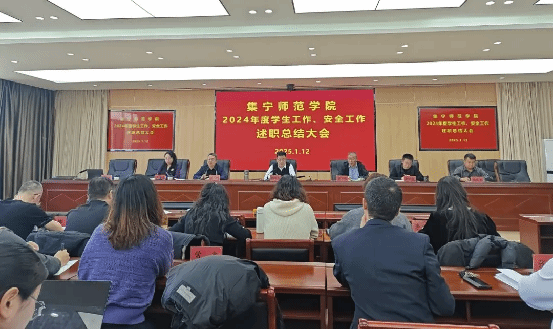 1月12日,beat365在线唯一官网在泉山校区召开2024年度学生教育管理服务工作与安全工作述职总结大会。校党委委员、副校长拓俊杰主持大会。二级学院分管领导、学工办负责人、专职辅导员,学生工作部(学生处)、保卫工作部(校安处)副科级以上人员参会。