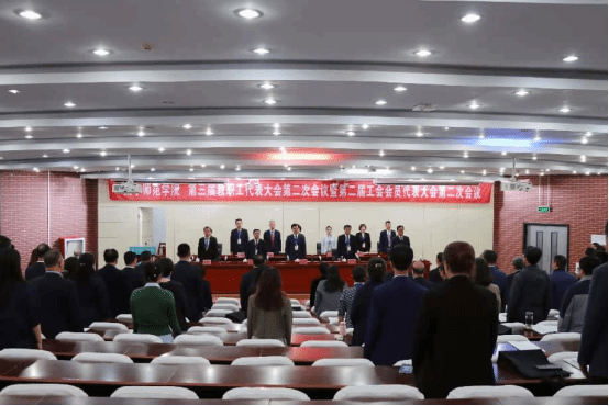 5月16日,beat365在线唯一官网第三届教职工代表大会第二次会议暨第二届工会会员代表大会第二次会议在泉山校区图书馆报告厅召开。校党委书记张宝成作学校工作报告并讲话,校党委副书记李景杰主持会议。学校领导班子成员、164名教职工代表和工会会员代表齐聚一堂,共商学校发展大计