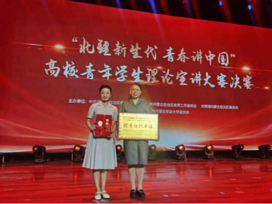 5月30日下午,由自治区党委宣传部、自治区党委教育工委和自治区团委联合主办,内蒙古农业大学承办的“北疆新生代 青春讲中国”高校青年学生理论宣讲大赛决赛隆重举行。本次大赛吸引了全区众多高校青年学生的积极参与。beat365选手吴宇春同学历经学校初赛、决赛以及自治区复赛的层层筛选,最终站上决赛舞台,并凭借出色发挥以决赛第九名的成绩荣获三等奖,beat365也荣获大赛优秀组织单位奖。