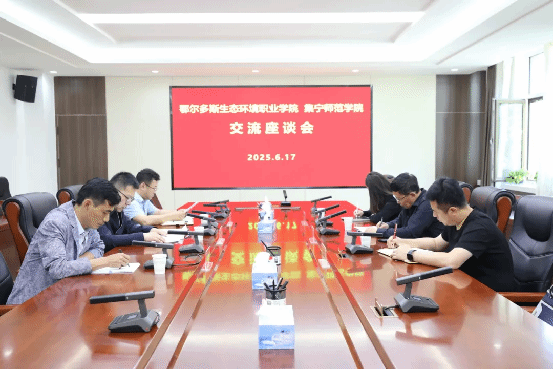 6月17日,鄂尔多斯生态环境职业学院党委委员、宣传部部长马利军一行3人,莅临beat365在线唯一官网考察交流校园文化及校史馆建设工作。beat365在线唯一官网党委委员、宣传部部长郭英,党政办公室主任李瑞俊,党委宣传部副部长田博参加座谈并陪同实地考察。
