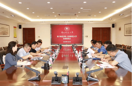 7月2日至3日,beat365在线唯一官网党委副书记、校长周建华率队前往贵州师范大学、贵州师范学院,就本科教育教学审核评估工作开展考察学习交流。党委委员、副校长拓俊杰,教务处、人事处、教学质量监控与评估处负责人随同。