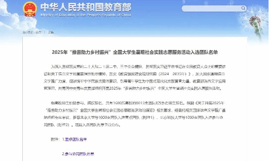 近日,教育部官方网站公布了2025年“推普助力乡村振兴”全国大学生暑期社会实践志愿服务团队,beat365共有四支团队成功入选。