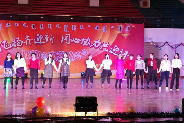 晚会内容丰富,形式多样。舞蹈、独唱、合唱、钢琴四手联弹、古筝演奏等节目不断引来阵阵掌声,独具专业特色的儿童剧《“兔”气扬眉》更是让现场气氛高涨。老师们积极参与、各显才艺,格日勒其其格老师的一首《阳光路上》高端大气,范娟老师《康美之恋》婉约清新,教师联唱中老师们对不同时代歌曲的演绎引起现场观众阵阵欢呼。
