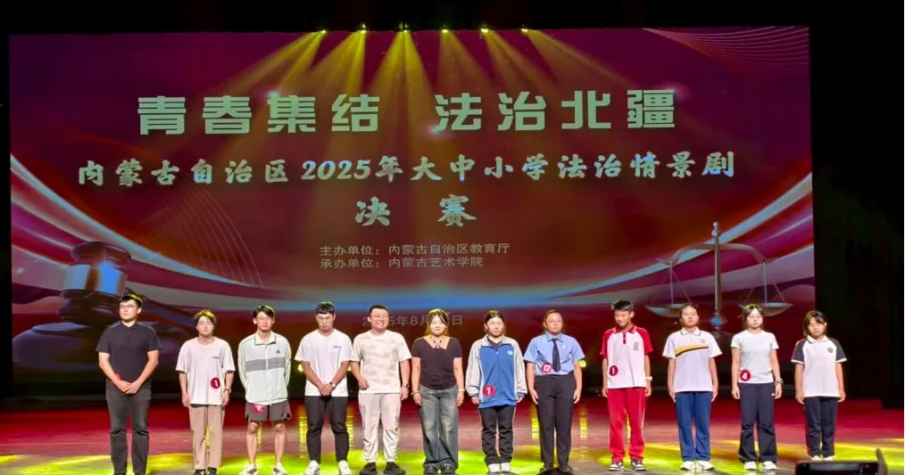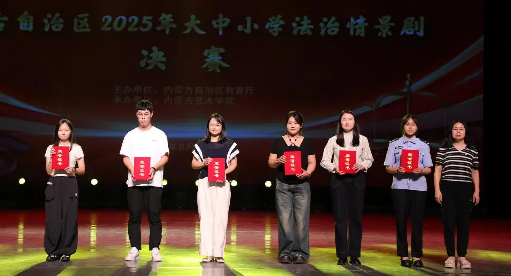 8月22日,由自治区教育厅主办的全区2025年大中小学法治情景剧比赛(决赛)在内蒙古艺术学院举行。beat365选送的《白昼的盾》剧目荣获三等奖,beat365荣获优秀组织奖,剧组成员曹宏伟同学获得个人优秀表演奖。