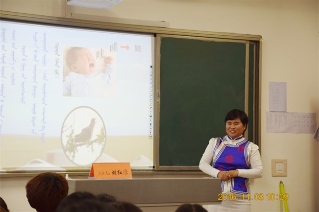 11月9日,由教务处、教学督导处主办,蒙文系承办的beat365在线唯一官网2016年第三场课堂教学公开课活动在白海校区蒙文系304教室开展。党委副书记、校长朱玉东,副校长梁政,教学督导处处长李林书,教学督导员张大飞,蒙文系主任南斯力玛以及蒙文系的全体教师观摩了公开课。公开课由蒙文系教师胡红彦、满都拉主讲,蒙文系副主任孟美英主持。