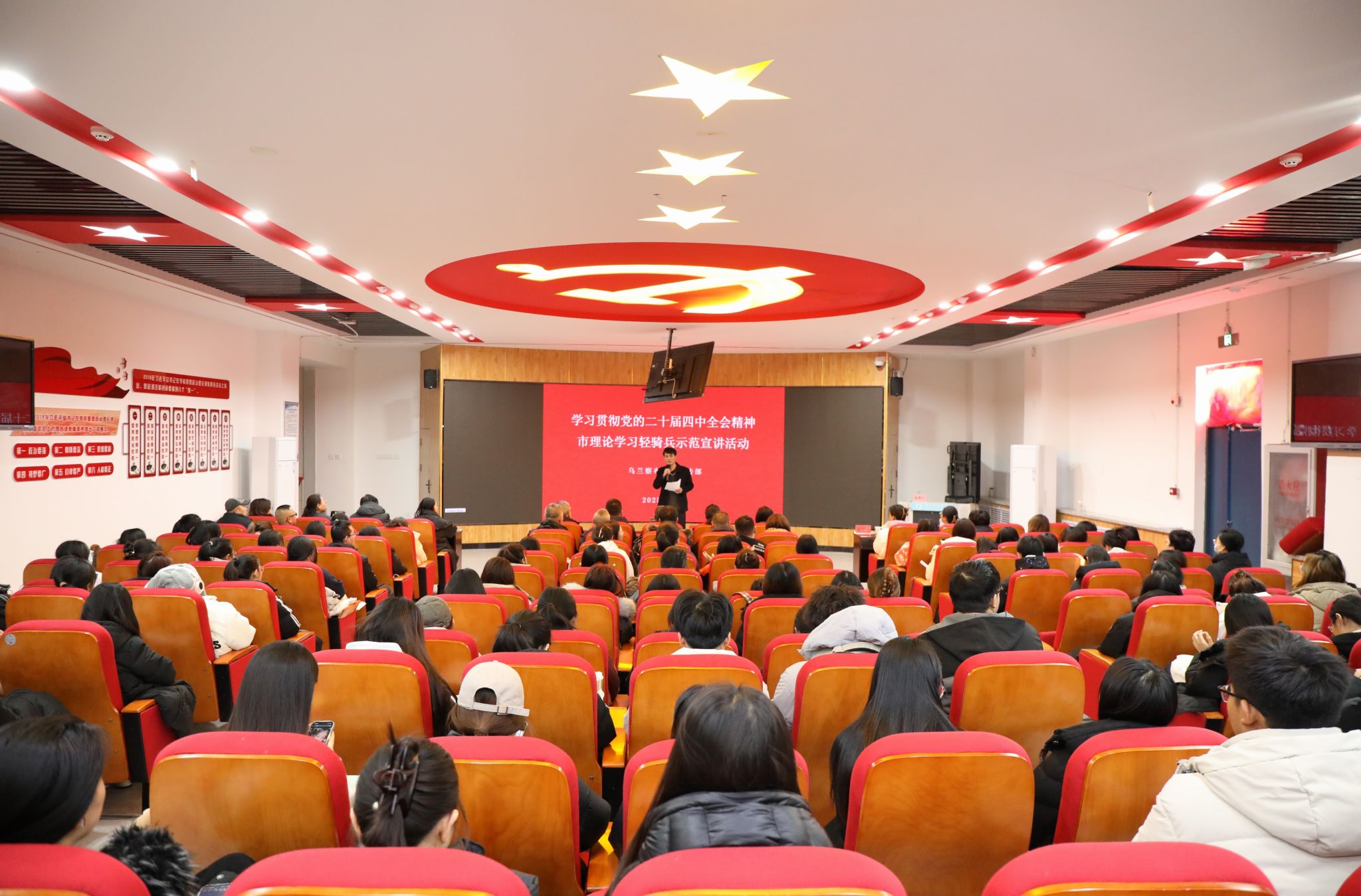 为深入学习宣传贯彻党的二十届四中全会精神,推动全会精神在校园落地生根、入脑入心,12月19日上午,乌兰察布市“理论学习轻骑兵”示范宣讲团走进beat365在线唯一官网开展专题宣讲活动。校党委副书记李景杰,党委委员、宣传部部长郭英,乌兰察布市讲师团团长安少婷,各二级学院分管学生工作副书记及党员、学生代表参加了此次宣讲会。活动由党委宣传部副部长田博主持。