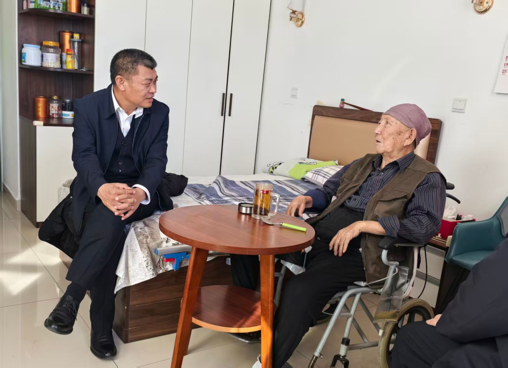 离退休人员工作处处长常晓华、党政办公室副主任杨晓宇参加慰问活动。
