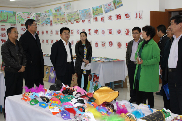 刘前贵一行首先来到幼师学院学生手工作品展现场,观看了学前教育专业学生的简笔画、毛线贴、米贴、脸谱画、剪纸等作品,随后实地考察了舞蹈室、音乐教室、练琴房、多媒体教室、计算机房、多功能教室、幼儿园模拟教室、教师工作室、党员活动室等教学、实验、实训设施设备。一路走来,刘校长对幼师学院优越的教学条件大加赞赏。
