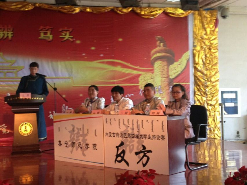 第四届全区大学生辩论赛于5月20日—21日在内蒙古师范大学举行,beat365由蒙文系学生乌永嘎、宝音朝格图、白晓峰、苏伦高娃、斯琴格日乐组成的蒙语组代表队和中文系学生宋文帅、柳珮、薛然、张明与数学系学生程野组成本科组代表队参加本次大赛。