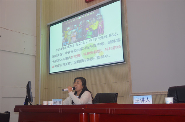 杨明霞以《守望相助 建设美好内蒙古》为题,从自治区的区情、建设和发展等方面阐述了“守望相助”的具体内容——守好家园,登高望远,各族干部群众要牢固树立平等团结互助和谐的思想,各族人民拧成一股绳,共同守卫祖国边疆,共同创造美好生活。她还围绕习近平总书记提出的“打造北疆靓丽风景线”的总目标,指出青年应承担的责任和义务,并激励青年为建设内蒙古、共圆伟大中国梦谱写新时代新篇章。