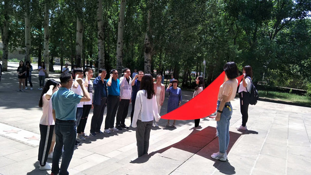 为深入学习贯彻“十九大”精神和习近平新时代中国特色社会主义思想,推进“两学一做”学习教育常态化、制度化,6月3至7日,政法与历史文化学院党总支书记、教工支部书记、学工支部书记、学工支部副书记、专职辅导员等12名师生党员在指导2016级思想政治教育教育专业学生专业见习的同时,在革命圣地延安开展了“不忘初心、牢记使命”系列主题教育活动。
