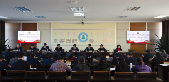 朱玉东总结讲话。他表示,2019年,学校党委深入学习贯彻习近平新时代中国特色社会主义思想和党的十九大、十九届二中、三中、四中全会精神,学习习近平总书记考察内蒙古重要讲话重要指示批示精神、深入学习贯彻习近平总书记关于教育的重要论述,特别是在全国教育大会上的重要讲话精神,学习党史、新中国史,及时跟进学习习近平总书记在出席庆祝中华人民共和国成立70周年系列活动时重要讲话精神和习近平总书记最新重要讲话文章等内容,全面部署学校党建工作,为培养德智体美劳全面发展的社会主义建设者和接班人提供坚强的政治保证、思想保证和组织保证。一年来,全校各级党组织找准定位,勇挑重担,大力抓好基层党组织建设,特别是在“不忘初心、牢记使命”主题教育中,坚持以上率下,走在前,做表率,担当作为谋发展,尽职实干促跨越,各项工作取得明显的成效:一是干事创业的热情高涨;二是履职尽责的本领增强;三是积极推动学校的高质量发展;四是扎实开展主题教育。