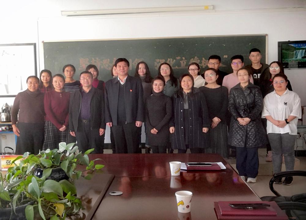 张富从“不忘初心、牢记使命”提出的历史背景、新青年的时代责任、高校教师的职责和使命等多方面作了讲解。要深刻理解和准确把握立德树人根本任务,牢记教育的初心和使命,为党育人,为国育才。按照习近平总书记提出的“德智体美劳”全面发展的总要求,坚持思想引领,坚持立德树人,培养全面发展的能担当时代重任的时代新人。要做“四有”好老师,在坚定理想信念上下功夫、在厚植爱国主义情怀上下功夫,在加强品德修养上下功夫,在增长知识见识上下功夫,在培养奋斗精神上下功夫,在增强综合素质上下功夫,做青年学生的引路人。每位教师爱惜这份职业,严格要求自己,不断完善自己。用爱培育爱、激发爱、传播爱,用真情、真心、真诚滋润学生的心田。用欣赏增强学生的信心,用信任树立学生的自尊,让每一个学生都健康成长。学校正致力于促进高质量发展,培养高质量人才,要把思想政治教育融入教育教学、科学研究、管理服务、社会实践各环节,切实把立德树人根本任务完成好。