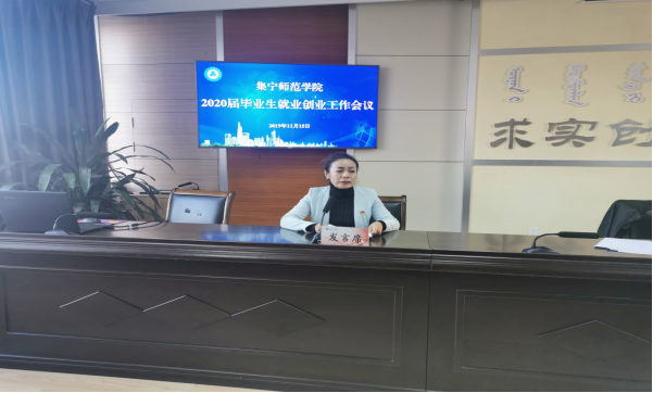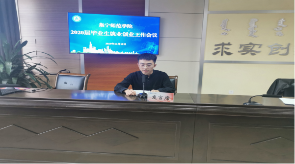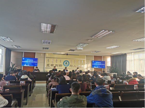 在会议上,蒙古学学院李青龙、经济与管理学院张伟、文学院张一弘作了交流发言。他们分享了各自院系在2019年度就业创业的工作经验以及在创新创业领域中取得的成绩。