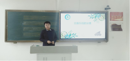 主讲教师沈剑讲了题为《歌曲乐段的分类》的示范课,他根据句式数量分类的意义及方式,利用大量谱例进行概念的讲授和创作思维的引导。要求学生掌握乐段分析的一般方法,具备独立分析乐段结构的能力,使学生能够进行乐段结构作品的创作。