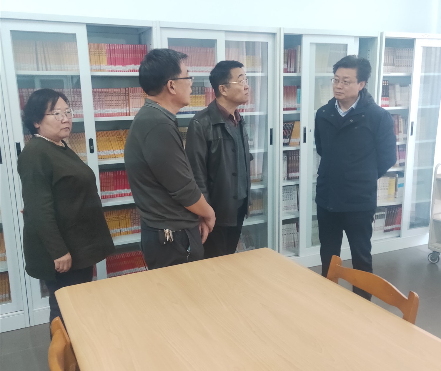 图书馆党总支书记海棠、馆长宋勤、副馆长高娃及相关科室负责人陪同调研。