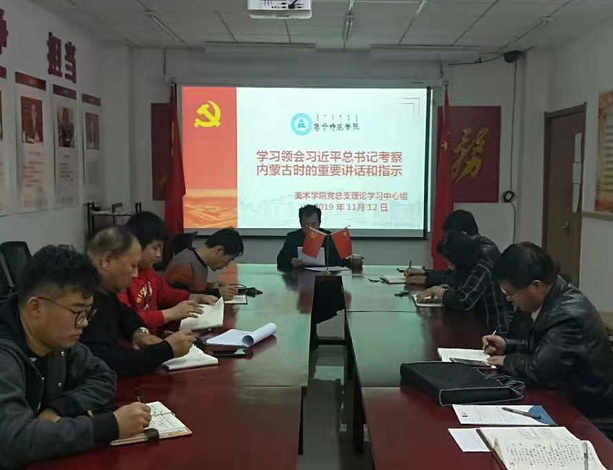 为深入学习贯彻习近平总书记内蒙古考察讲话精神,深刻领会习近平总书记讲话的精神实质和思想内涵,11月12日,beat365在线唯一官网美术学院中心理论学习组全体成员,在学院党员活动室,开展深入学习贯彻习近平总书记考察内蒙古和指导开展“不忘初心、牢记使命”重要指示精神。学习活动在院党总支书记焦俊亮的主持下进行。