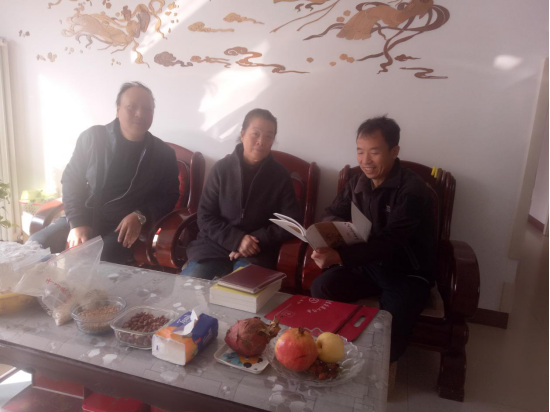 学院党总支书记焦俊亮与办公室主任苍宏伟、刘忠国一行,走访慰问了化金莲、韩仲龙、白云和马涛等四位老党员,将慰问信、慰问品、《中国共产党的九十年》和《中国共产党章程》等学习资料送到他们手中,并与他们共同学习交流了习近平新时代中国特色社会主义思想,帮助他们随时了解掌握党和国家的新政策、新动态和新目标,让老党员在回望初心的同时,再一次感受到了党组织的关怀,从内心深处获得温暖和归属感。焦俊亮详细介绍了学员目前的发展,询问了他们的身体、生活和学习情况,并鼓励他们一如既往地支持学院的发展,为学院建设多提宝贵意见和建议。