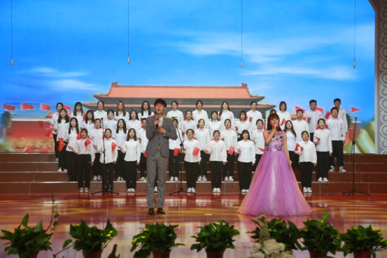 晚会以舞蹈、歌曲、重温先辈故事等形式,用青春活力的展现描绘着对党的热爱,歌颂党的伟大历史,力与美相融合,全体师生齐唱《没有共产党就没有新中国》,更是将晚会推向了高潮。晚会主题鲜明,形式多样,内容深刻,精彩纷呈,引起台下嘉宾及观众的共鸣,激起阵阵掌声。