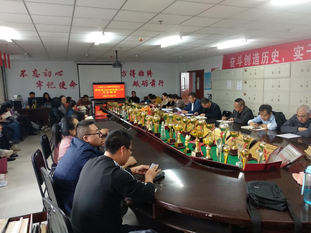 会议传达并学习了习近平总书记在中央民族工作会议上发表的重要讲话、习近平总书记给全国高校黄大年式教师团队代表重要回信精神。