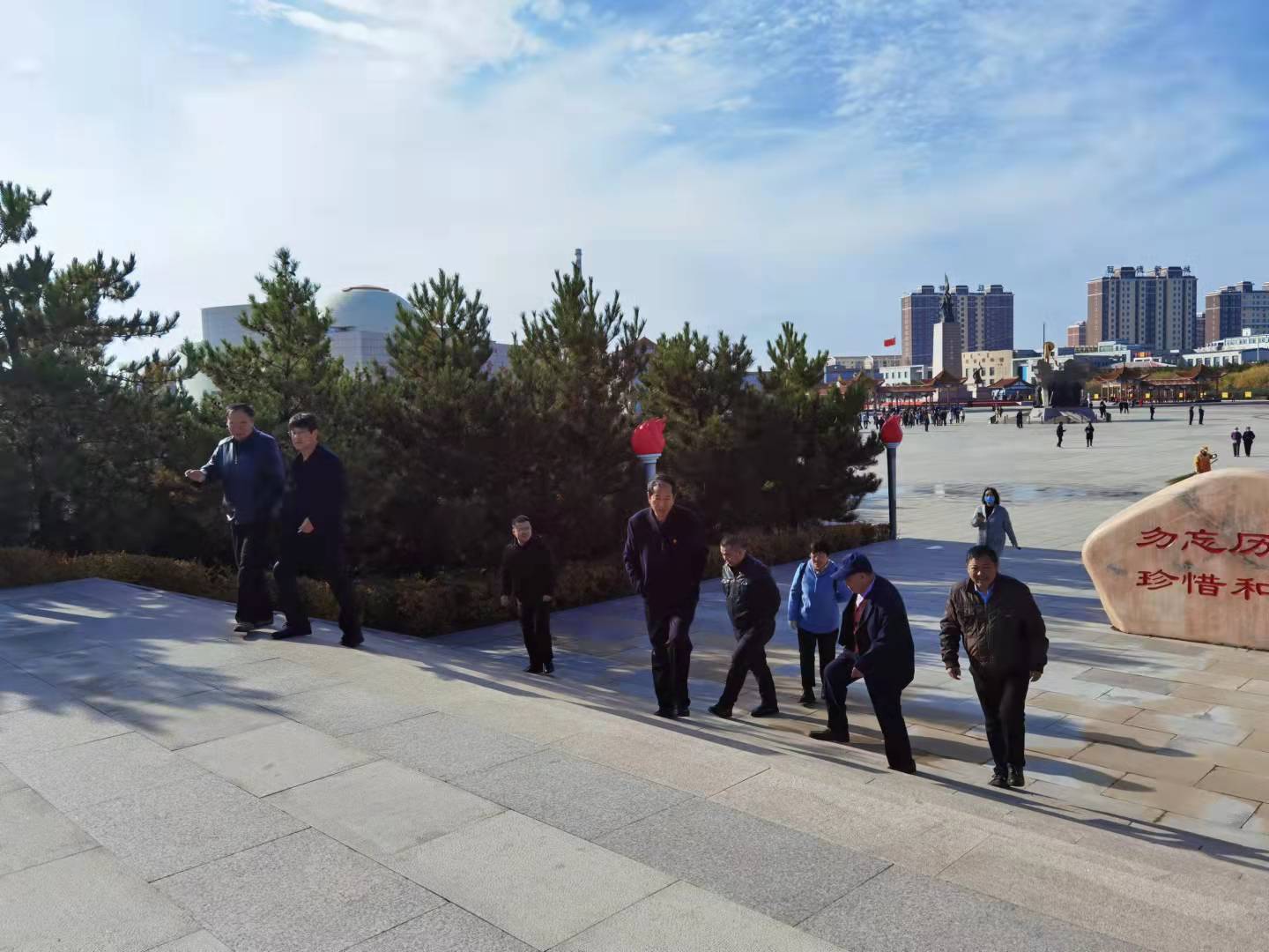 党员干部们陪同离退休老党员登临老虎山,参观将军园,瞻仰革命烈士纪念碑。老党员们表示,非常感谢党支部组织本次活动,能和大家在这样的一个日子里一起缅怀先烈、活动筋骨,别有一番意义。