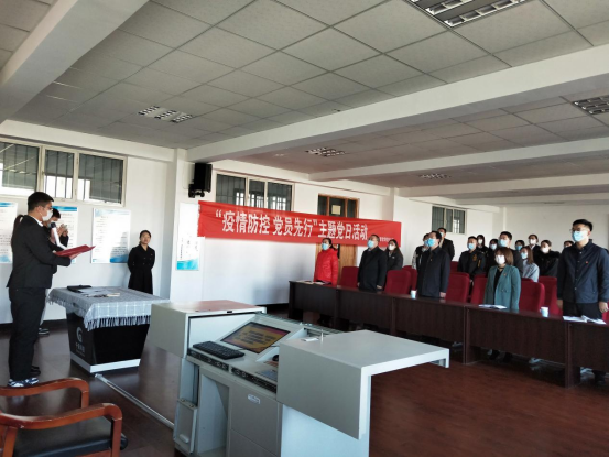 接着,由两名学生党员带领大家集体承诺在疫情防控中“积极示范带动,彰显党员本色,打造疫情防控‘先锋队’,让党旗在疫情防控工作第一线高高飘扬。”
