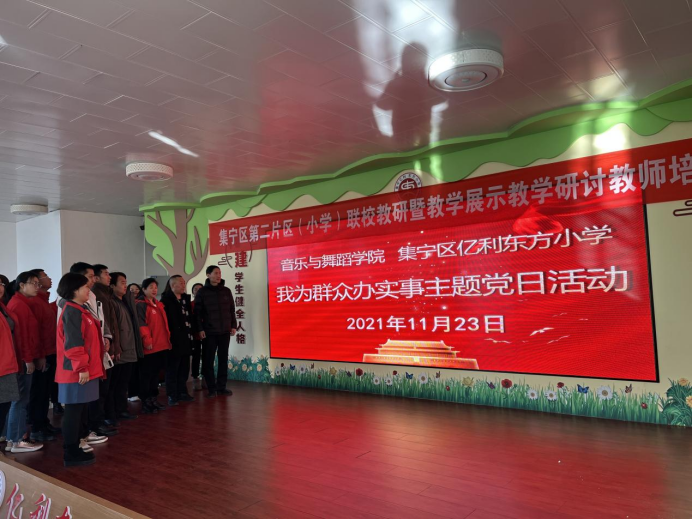 学史力行是党史学习教育的落脚点。为深入推进党史学习教育,扎实开展“我为群众办实事”实践活动,11月23日,音乐与舞蹈学院与集宁区亿利东方小学联合举办“我为群众办实事”主题党日活动,推动了“办实事”活动走深走实。