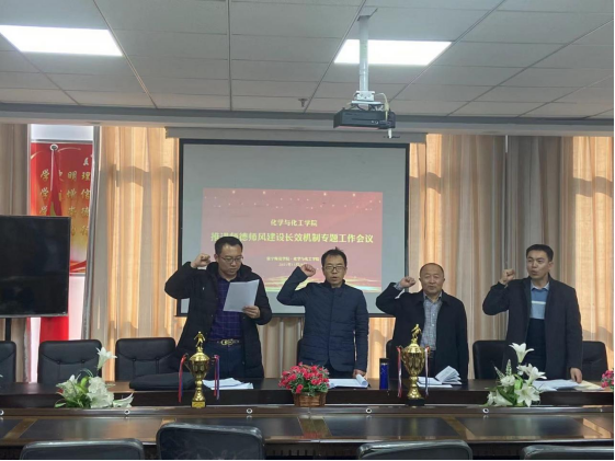 为进一步贯彻执行2019年国家教育部《关于加强和改进新时代师德师风建设的意见》、《内蒙古自治区高等学校教师师德师范行为负面清单》、2021年《beat365在线唯一官网关于建立健全师德师风建设长效机制实施办法》,教育引导全体教职工牢固树立“以德立身、以德立学、以德施教、以德育德”教育理念,建设形成我院“师德师风”建设长效工作机制,提升教师形象,努力打造一支高素质的教师人才队伍。11月29日下午,化学与化工学院组织开展“师德师风”建设长效机制学习教育活动。副书记侯秀峰、副院长徐松鹤以及化学与化工学院全体教职工参加本次活动。学院党总支书记焦俊亮主持会议。