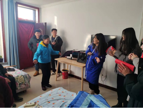 党员与老人们进行亲切交谈,与他们聊家常,询问老人们的饮食起居与身体健康状况,数学与统计学院的学生党员为老人们准备了精彩的文艺节目,老人们时而开怀大笑,时而随歌起舞,一间不大的小屋内,洋溢的幸福、温馨与快乐。