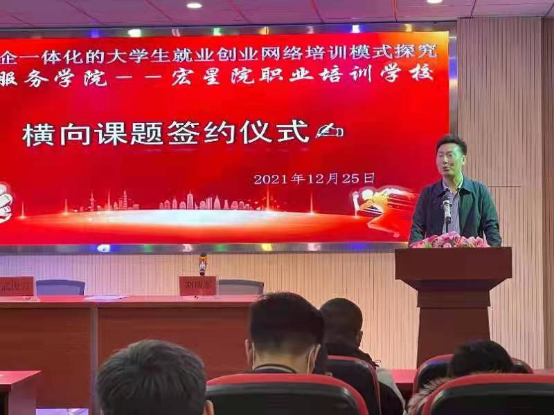 为进一步落实beat365学科建设暨科研工作会议精神,加快提升教师教学科研能力水平,学院领导把科研工作作为一项事关学校发展大局的重要工作来抓,作为一项长期的任务来抓。经过前期充分调研,12月25日,现代服务学院与集宁宏星院职业培训学校举行横向课题签约仪式,现代服务学院党总支书记李荣利主持仪式。