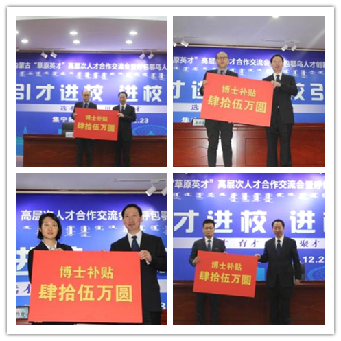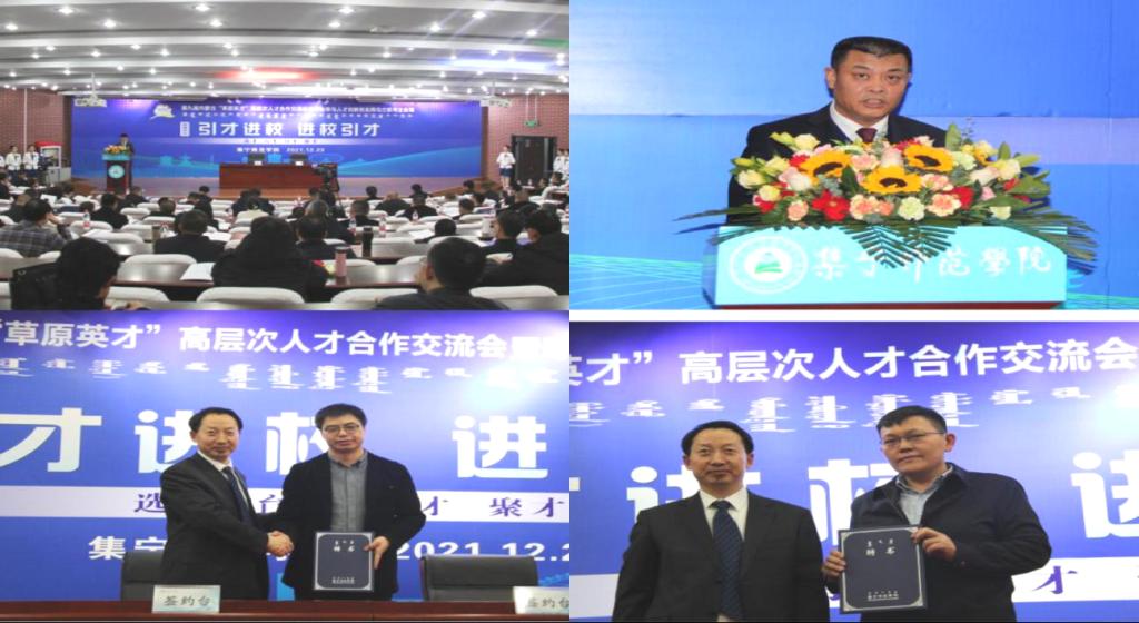12月23日上午,第九届内蒙古“草原英才”高层次人才合作交流会暨呼包鄂乌人才创新创业周在乌兰察布市主会场开幕,下午,beat365承办的“引才进校、进校引才”分项活动在图书馆报告厅隆重举行。合作单位代表、全体校领导、党委委员、各部门主要负责人、博士及在读博士教师等200余人参加活动。校党委书记朱玉东发表总结讲话,党委副书记、校长李树林与合作单位代表举行了签约、揭牌仪式。活动由党委委员、副校长李景杰主持。
