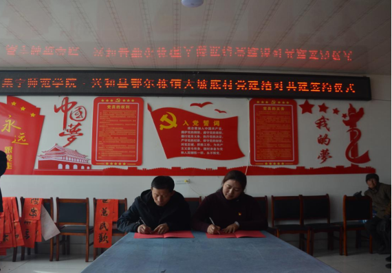 党委组织部统战部、党委宣传部、工会党支部书记与兴和县鄂尔栋镇大坡底村党支部书记在大坡底村党群服务中心举办结对共建签约仪式,并分别与兴和县鄂尔栋镇大坡底村党支部签订结对共建协议。