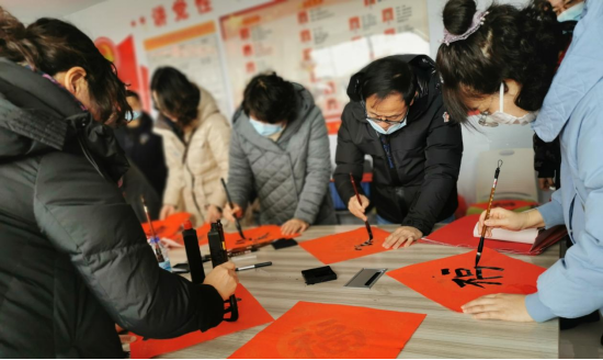 老师们同两村委现场开展了“弘扬传统文化、坚定文化自信”春联祝福送万家活动。