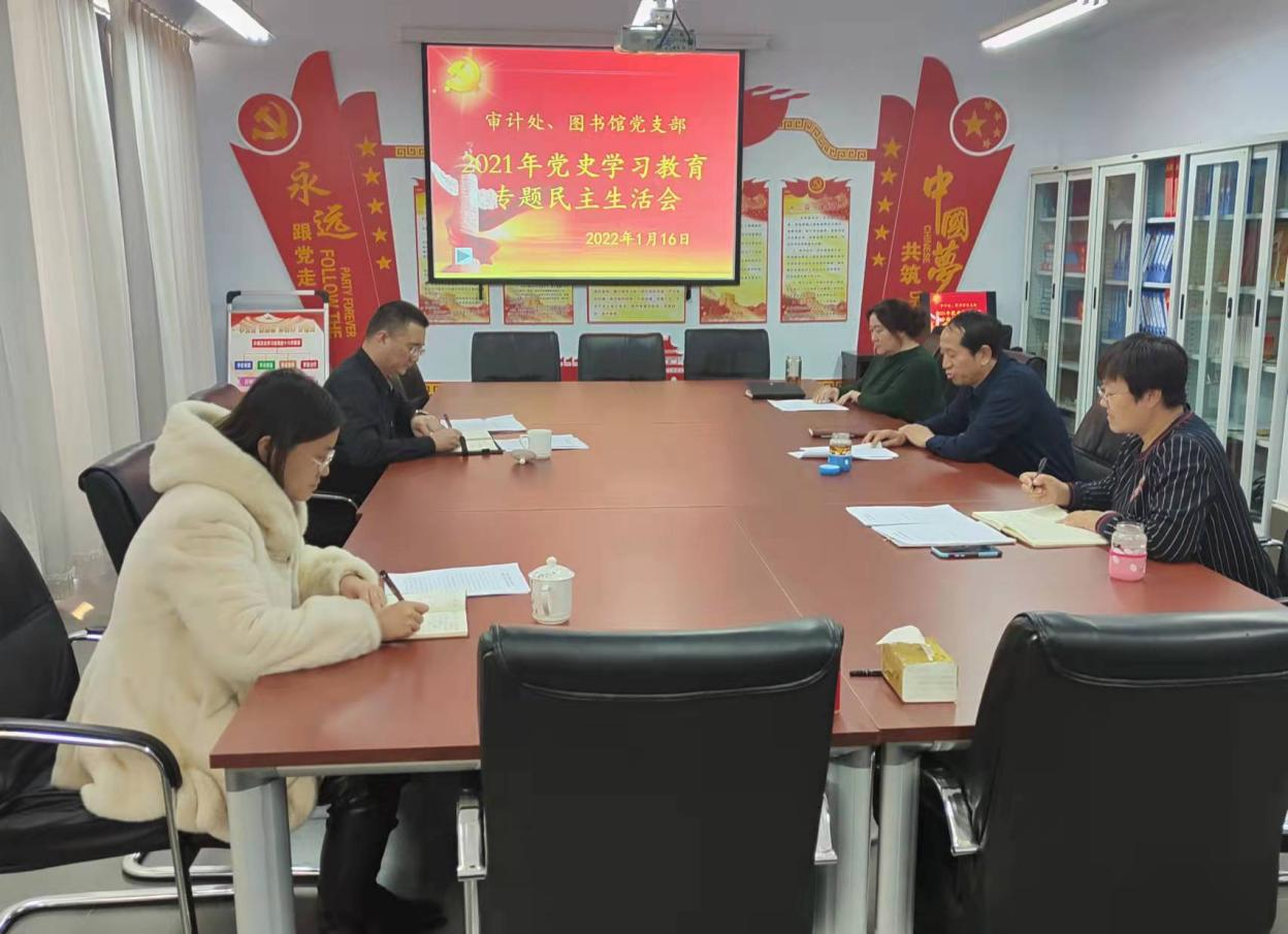 1月16日,审计处、图书馆党支部召开党史学习教育专题民主生活会。支部书记兰立新主持会议,审计处副处长何学锋、图书馆副馆长高娃参加了会议。校党史学习教育第三巡回指导组王飞、王璇到会指导。