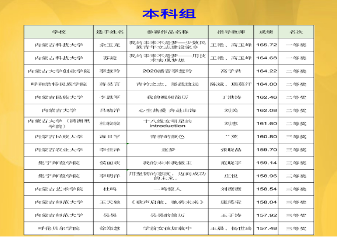内蒙古自治区第二届大学生视频简历大赛获奖名单公示