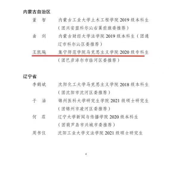 习近平总书记深情寄语广大青年要坚定前进信心,立大志、明大德、成大才、担大任,努力成为堪当民族复兴大任的时代新人,让青春在为祖国、为民族、为人民、为人类的不懈奋斗中绽放绚丽之花。王凯飚同学立志要做总书记要求的新时代青年,在高中期间曾作为临河区第三中学团员代表参加共产主义青年团临河区第十二次代表大会;在2019年被共青团巴彦淖尔市委员会评为全市优秀共青团员并授予荣誉证书。在大学校园的学习中,他更是刻苦钻研,踔厉奋发,夯基础,强学识,不断锤炼政治品格,提升学业技能,一手抓学习不放松,一手兼任数职练本领,处处以“有我”担当追求“无我”境界。他深知,只有把自己完全投入到为人民服务中去,才会实现更大的人生价值,才会收获更加厚重的幸福。