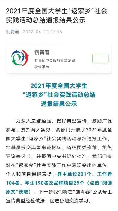 在学校的正确引导下,在各级领导的亲切关怀下,我院学生王凯飚积极响应校团委号召,在2021 年度全国大学生“返家乡”社会实践活动突出个人中获得团中央的通报表扬。